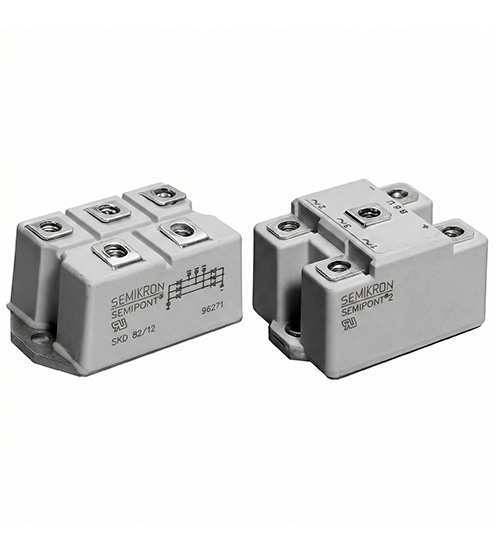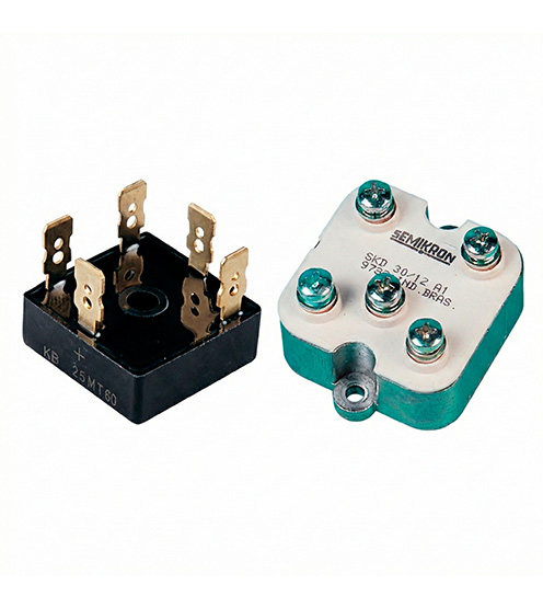 Manejamos módulos Semipack y Semitrans que integran varias capas de diodos en un solo encapsulado, ahorrando espacio crítico en tableros.